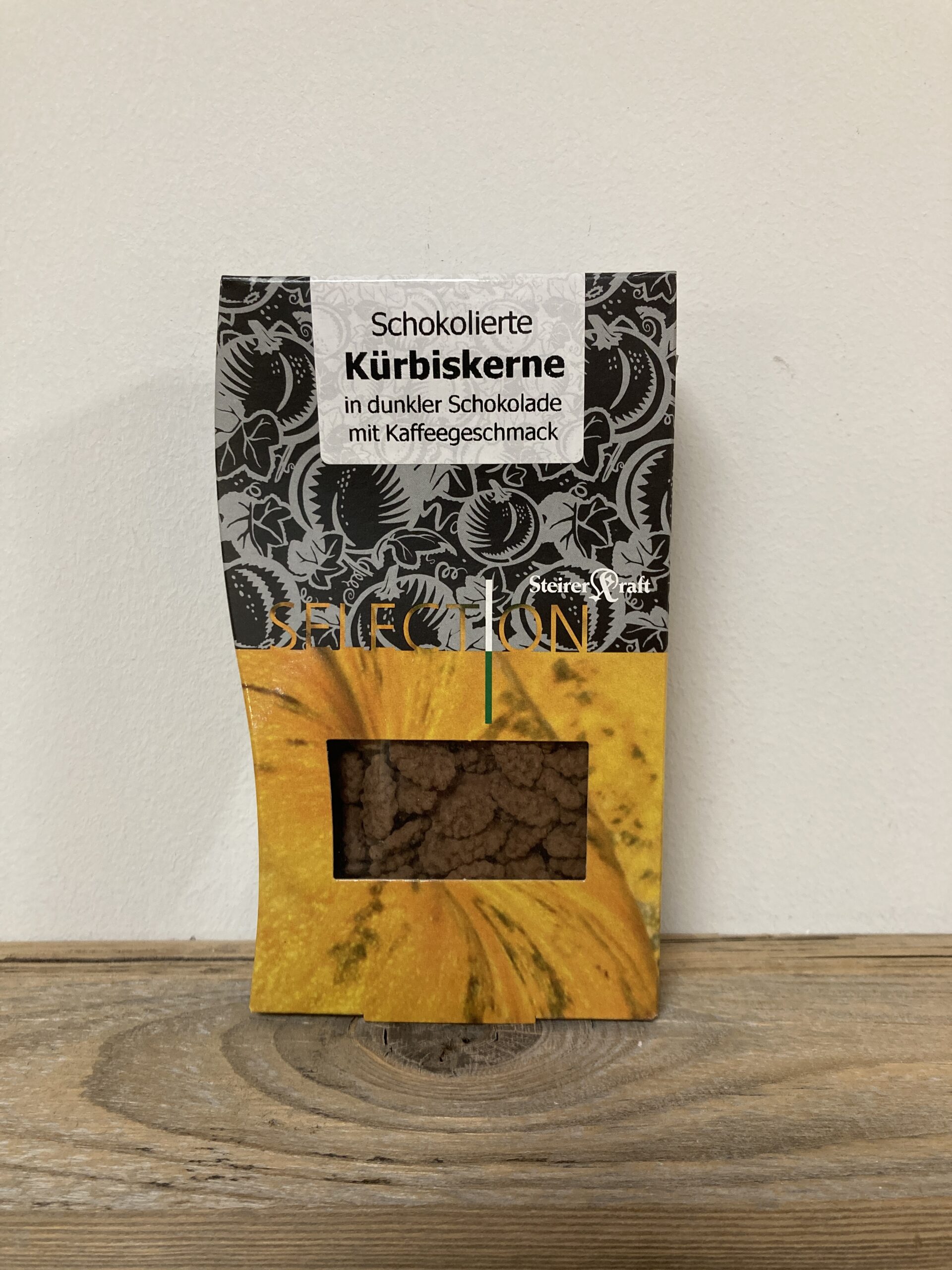 Erlesene Steirische Kürbiskerne umhüllt von dunkler Schokolade und Kaffeepuder. Aufgrund ihres natürlich hohen Spermidin-Gehaltes sind Steirerkraft Kürbiskerne die Steirische Spermidinquelle schlechthin. Erhältlich in der 100 g Selections-Faltschachtel.